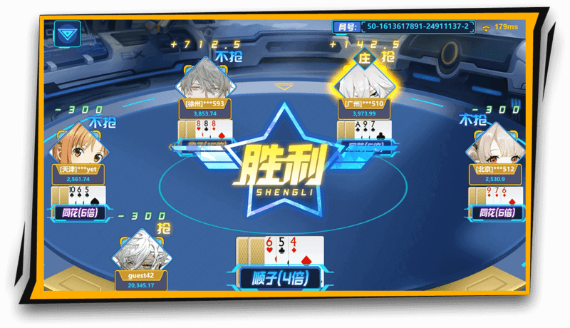 - 定庄:开局玩家开始抢庄。多人抢庄,随机一名玩家坐庄。超时不抢庄,系统自动执行不抢操作。所有人都不抢庄,随机一名玩家坐庄。